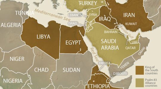 Вот современные названия этих народов: Эдом и Амалек – Турция; Измаильтяне – Саудовская Аравия и её соседи по Персидскому заливу; Моав и Аммон – Иордания; Агарин – Сирия; Гебал и Тир – Ливан; Филистимляне – современные палестинские арабы. Мы не можем быть полностью уверены в точности всех этих современных обозначений, но общая идея кристально ясна.